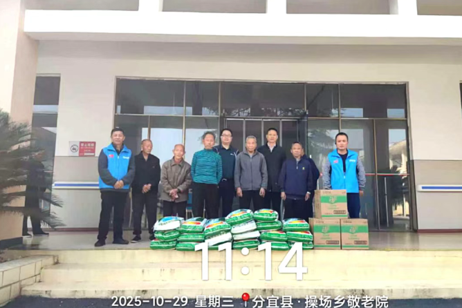 10月29日上午,菜东家董事长钟亮带领团队先后走访操场镇石塘村颐养之家与操场镇敬老院,为老人们送上大米、食用油等慰问品,亲切询问他们的生活与健康情况,现场气氛温馨融洽。