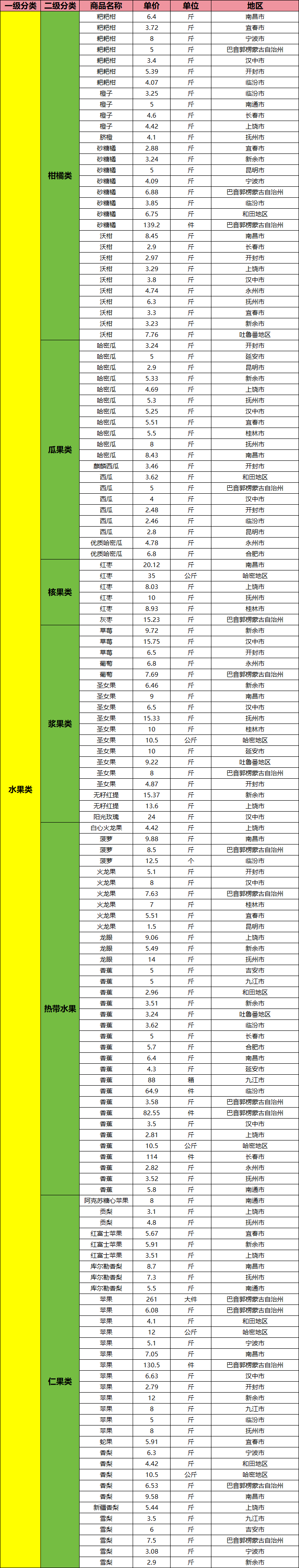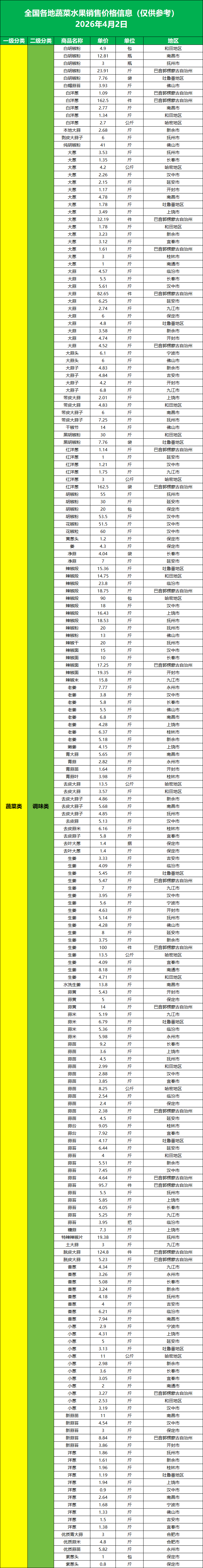 全国蔬菜水果销售价格日报(2026.4.2)